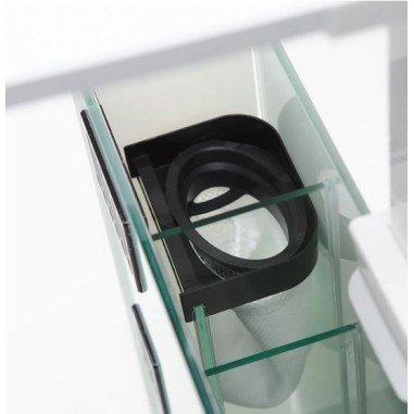 La parete divisoria posteriore del filtro è realizzata in vetro nero extrachiaro con griglie di aspirazione superiore e inferiore incise da macchinari CNC automatici . Questo sistema avanzato consente un’eccellente circolazione dell’acqua , mantenendo l’acquario pulito e sicuro per i suoi abitanti. La griglia di aspirazione inferiore è dotata di un sistema per regolare il flusso di ingresso , offrendo un controllo preciso e personalizzato.