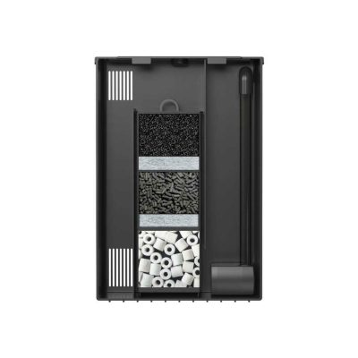 Il filtro è accessoriato con un riscaldatore da 100 W per il controllo della temperatura negli acquari tropicali.